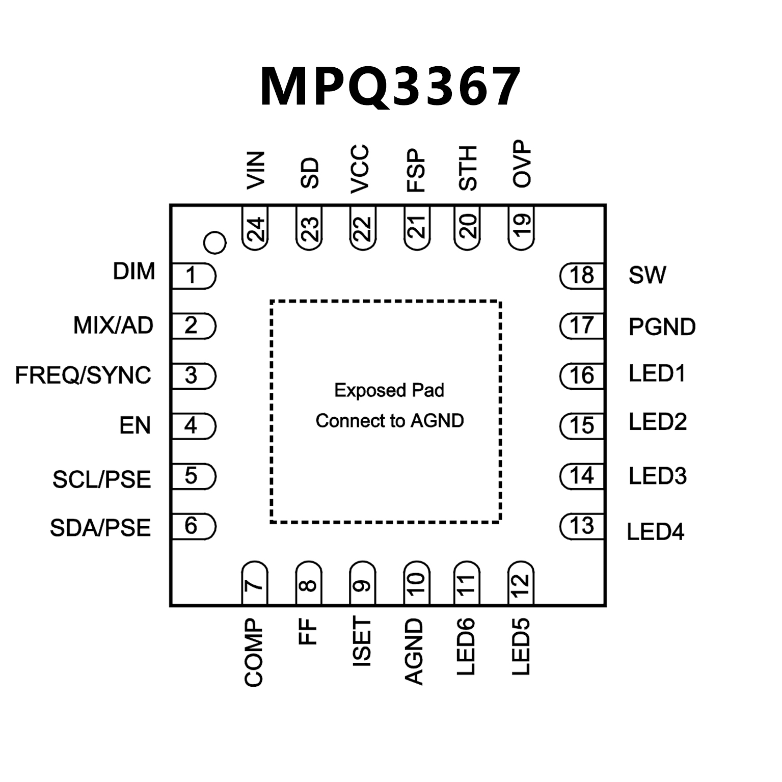 6-Channel, Max.150mA/Ch Boost WLED Driver with 15000:1 Dim Ratio and I2C, SGM37460Q P2P MPQ3367.