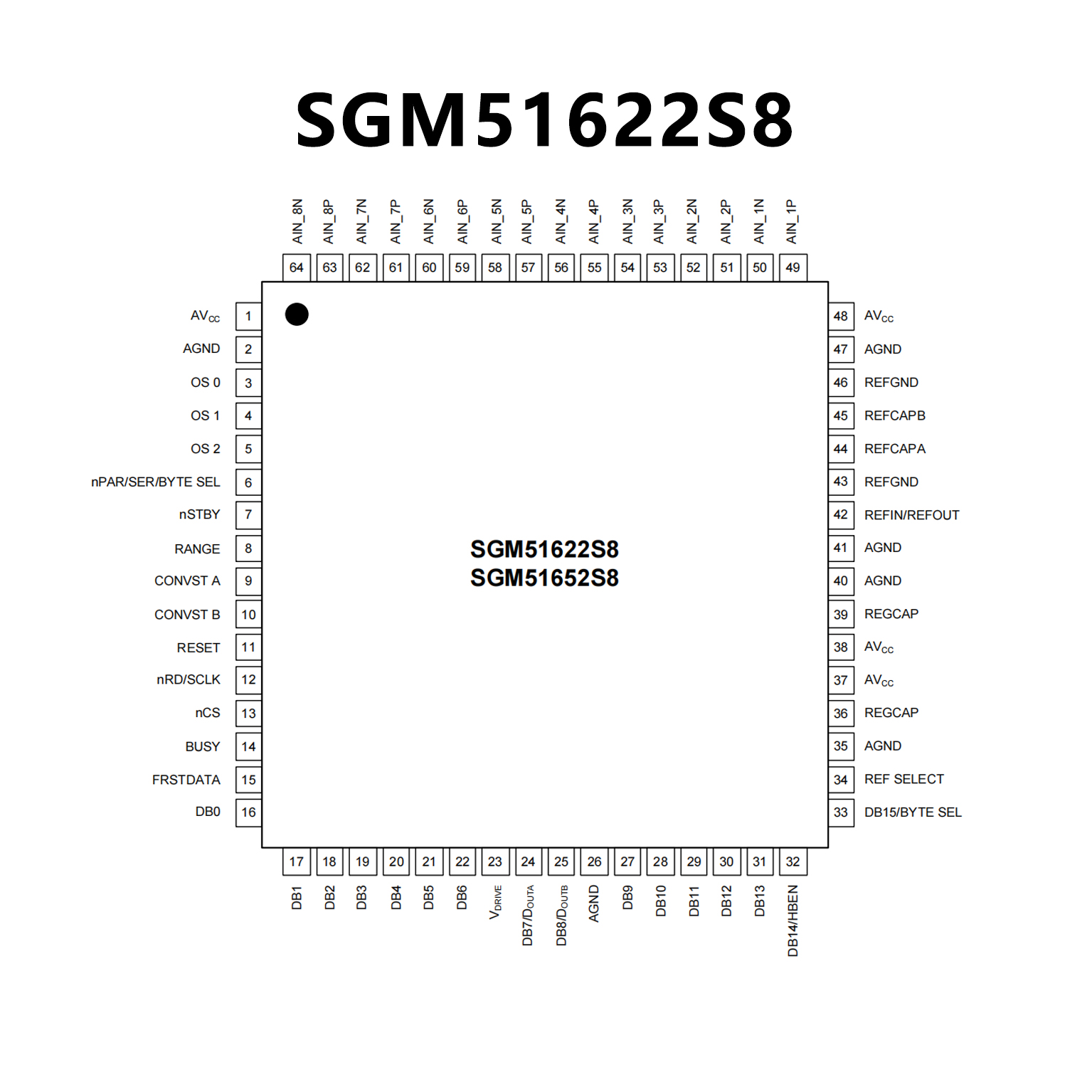 8-Channel, 16-Bit, Bipolar Input Simultaneous Sampling ADC, SGM51622S8 Replace ADS8588S.
