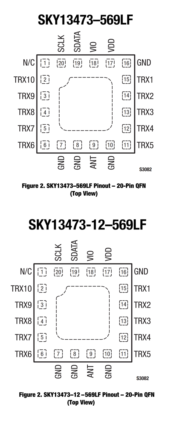 0.4 to 2.7 GHz SP10T LTE Transmit/Receive Switch with MIPI RFFE Interface,Replace SKY13473.
