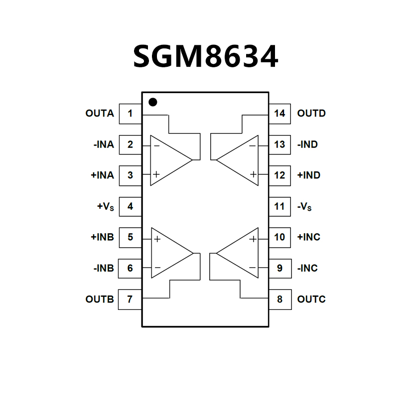 470μA, 6MHz, Rail-to-Rail I/OCMOS Operational Amplifier,SGM8634XS14 Replace TS274AIDT.