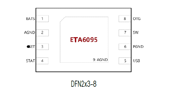 ETA6095适用于充电截止电压为 4.2V的锂电池,且使用DFN2x3-8封装。