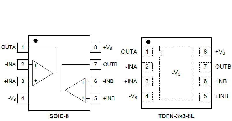 The single SGM8969-1 is available in a Green SOT-23-5 package. The dual SGM8969-2 is available in Green SOIC-8 and TDFN-3×3-8L packages. They are specified over the extended industrial temperature range (-40℃ to +125℃).