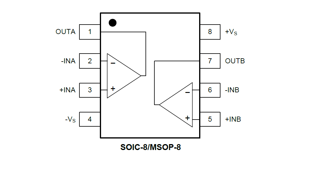 ● Input Voltage Range: -0.1V to 5.6V with VS = 5.5V