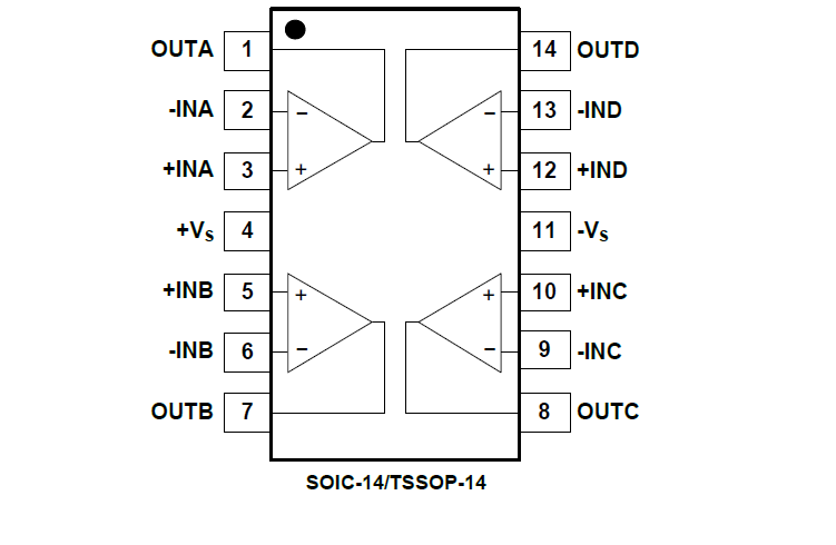 The SGM8270-4 is available in Green SOIC-14 and TSSOP-14 packages. It is specified over the extended -40℃ to +125℃ temperature range.