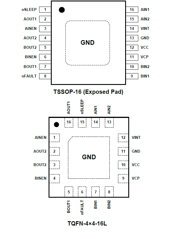 With proper PCB design, each H-bridge of the SGM42600 is capable of driving up to 1.5A RMS (or DC) continuously, at +25℃ with a VCC supply of 5V. It can support peak currents of up to 2A per H-bridge. Current capability is reduced slightly at lower VCC voltages.